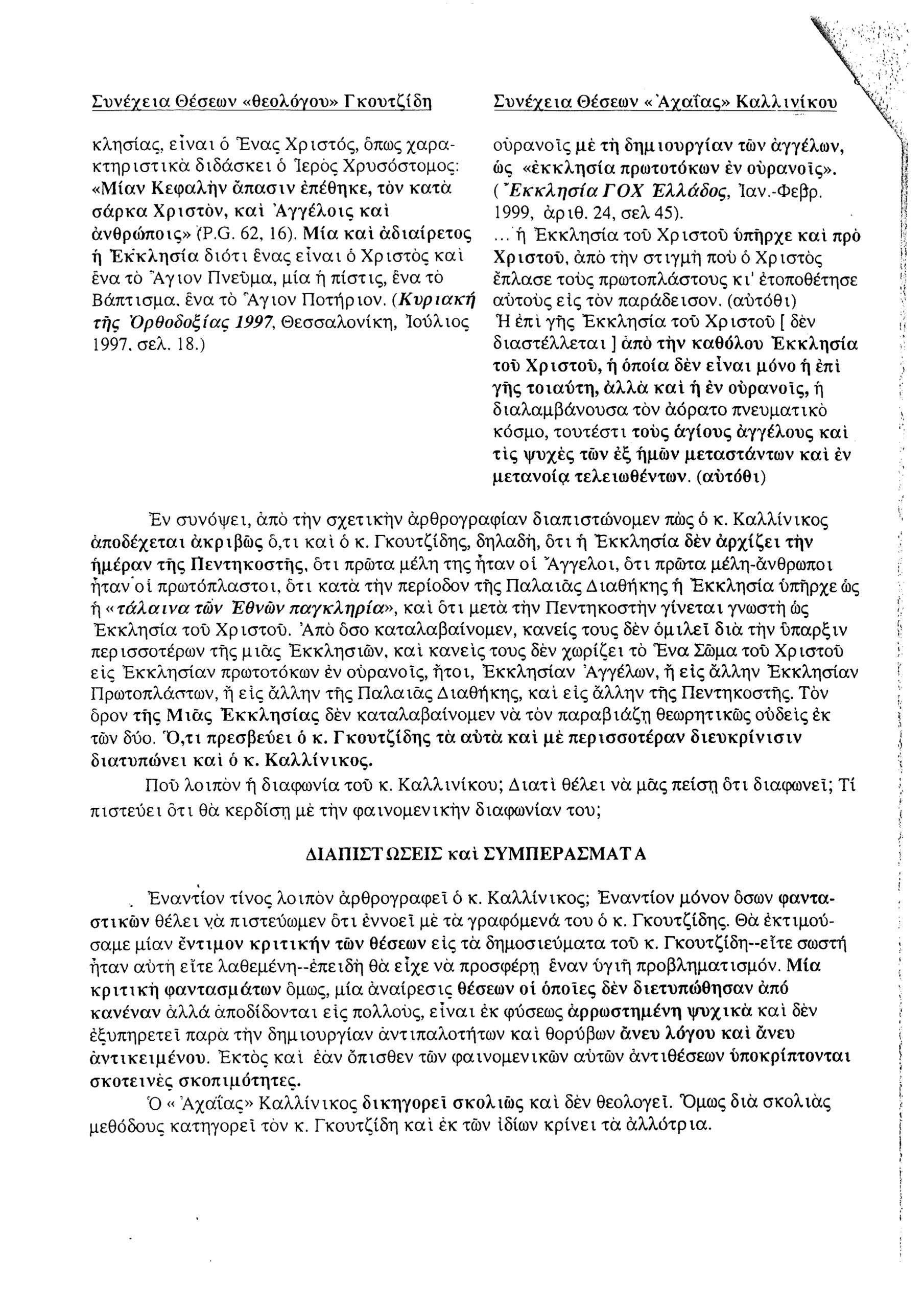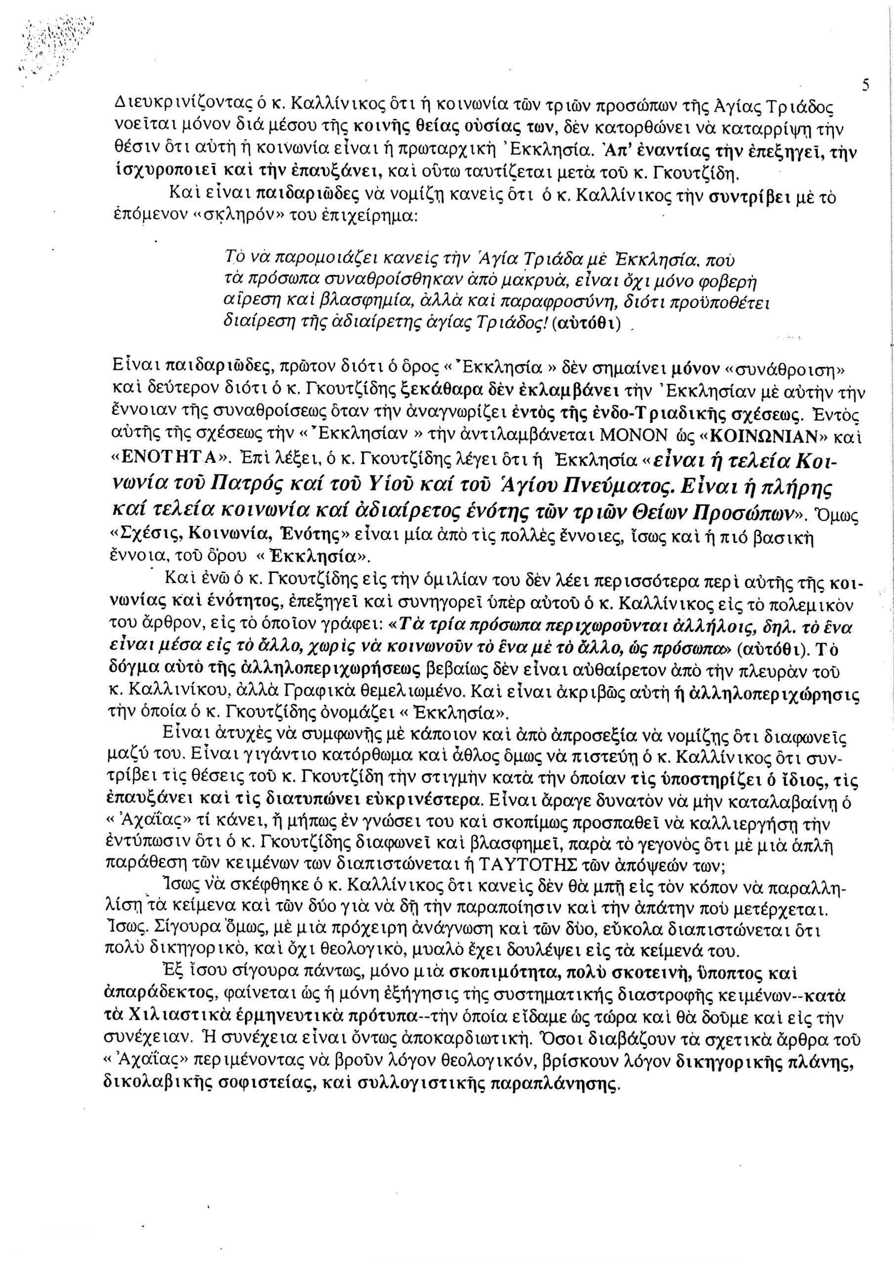 5. Η ΕΚΚΛΗΣΙΑ ΩΣ ΣΩΜΑ ΧΡΙΣΤΟΥ, Ενιαίον καί Αδιάσπαστον.