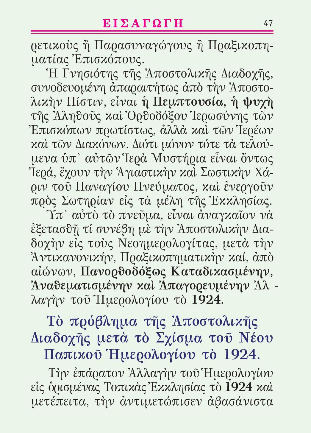 –Τὸ Πρόβλημα τῆς Ἀποστολικῆς Διαδοχῆς μετὰ τὸ Σχίσμα τοῦ Νέου Παπικοῦ Ἡμερολογίου τὸ 1924 – Σελ.47