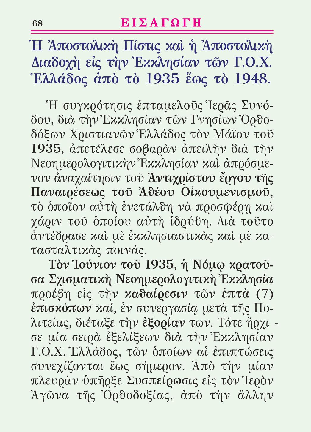 –Ἡ Ἀποστολικὴ Πίστις καὶ ἡ Ἀποστολικὴ Διαδοχὴ εἰς τὴν Ἐκκλησίαν τῶν Γ.Ο.Χ. Ἑλλάδος ἀπὸ τὸ 1935 ἕως τὸ 1948 – Σελ.68