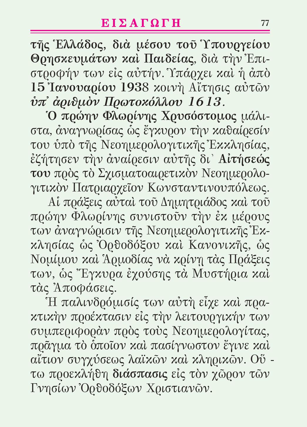 –Ἡ Ἀποστολικὴ Πίστις καὶ ἡ Ἀποστολικὴ Διαδοχὴ εἰς τὴν Γνησίαν Ὀρθόδοξον Ἐκκλησίαν μετὰ τὸ Σχίσμα. Περίοδος 1924-1935 – Σελ.54