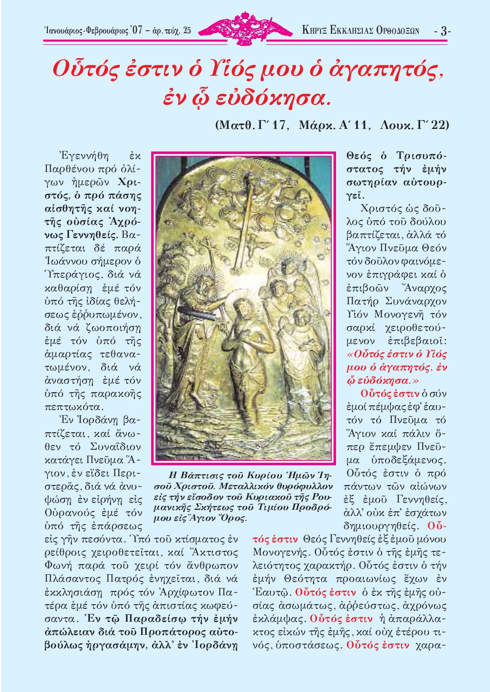 ‒ «Οὗτός ἐστιν ὁ Υἱός μου ὁ Ἀγαπητὸς ἐν ᾧ εὐδόκησα»