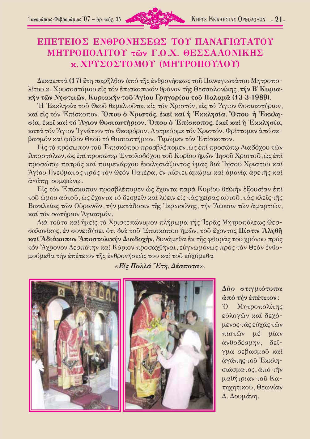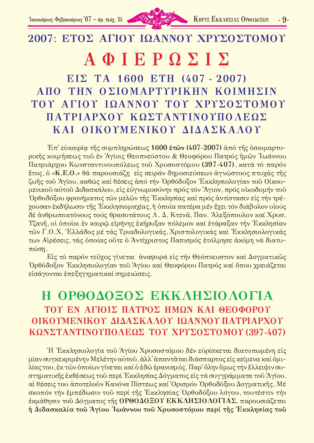 ‒ 2007: Ἔτος Ἁγίου Ἰωάννου Χρυσοστόμου,