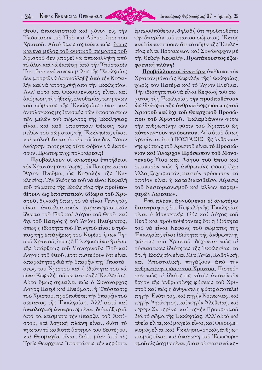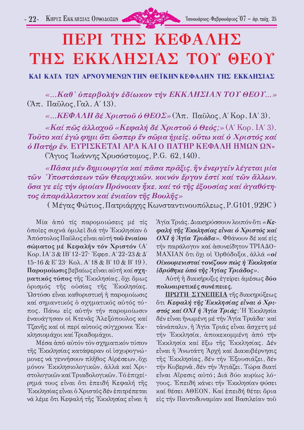 ‒ Περὶ τῆς Κεφαλῆς τῆς Ἐκκλησίας τοῦ Θεοῦ