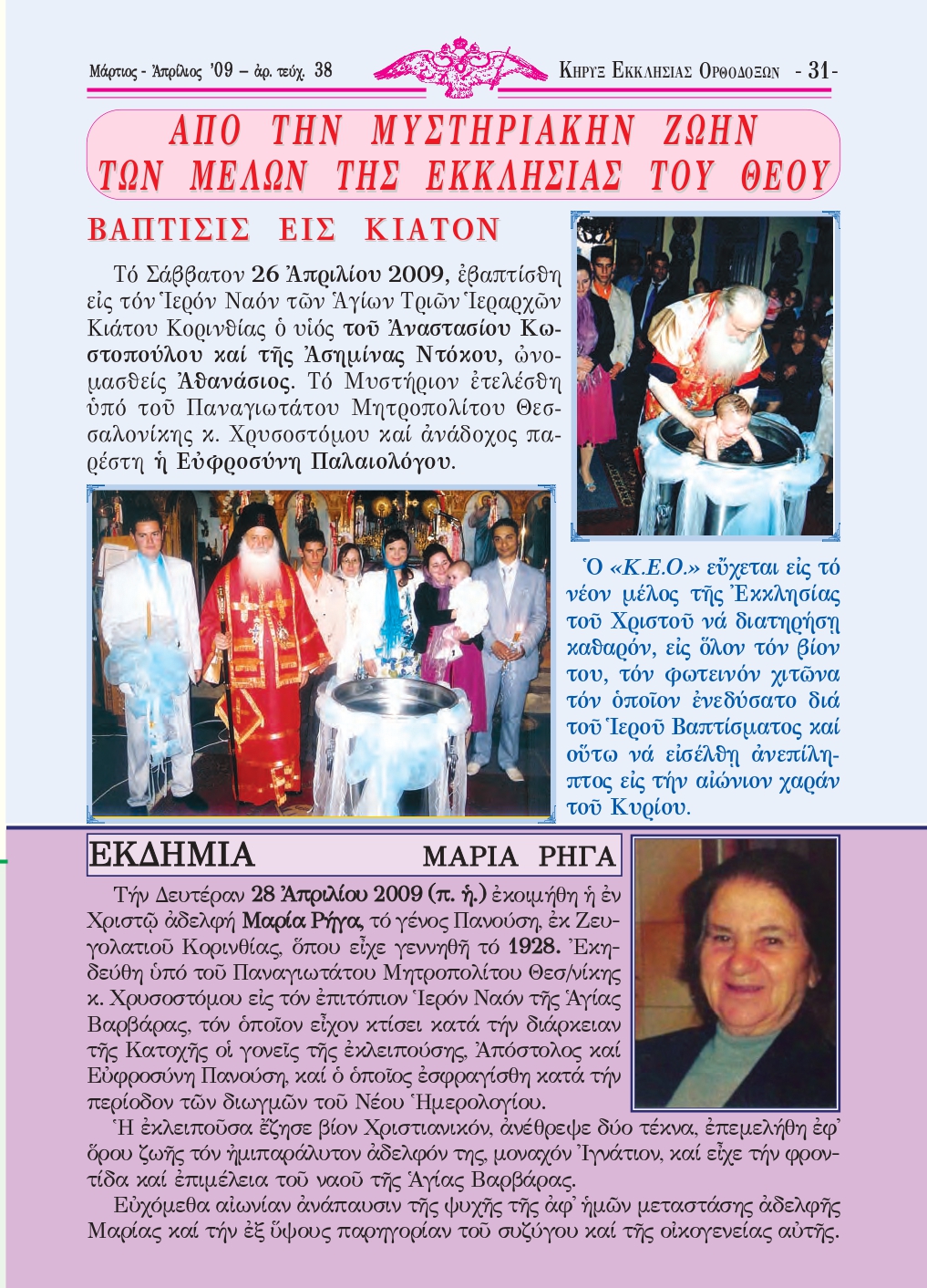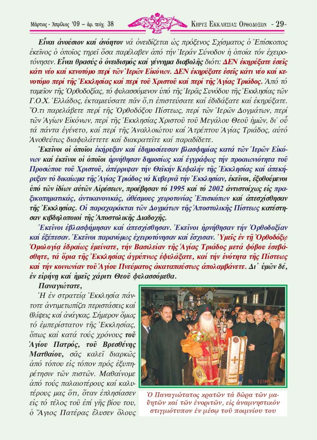 Μάρτιος – Ἀπρίλιος 2009