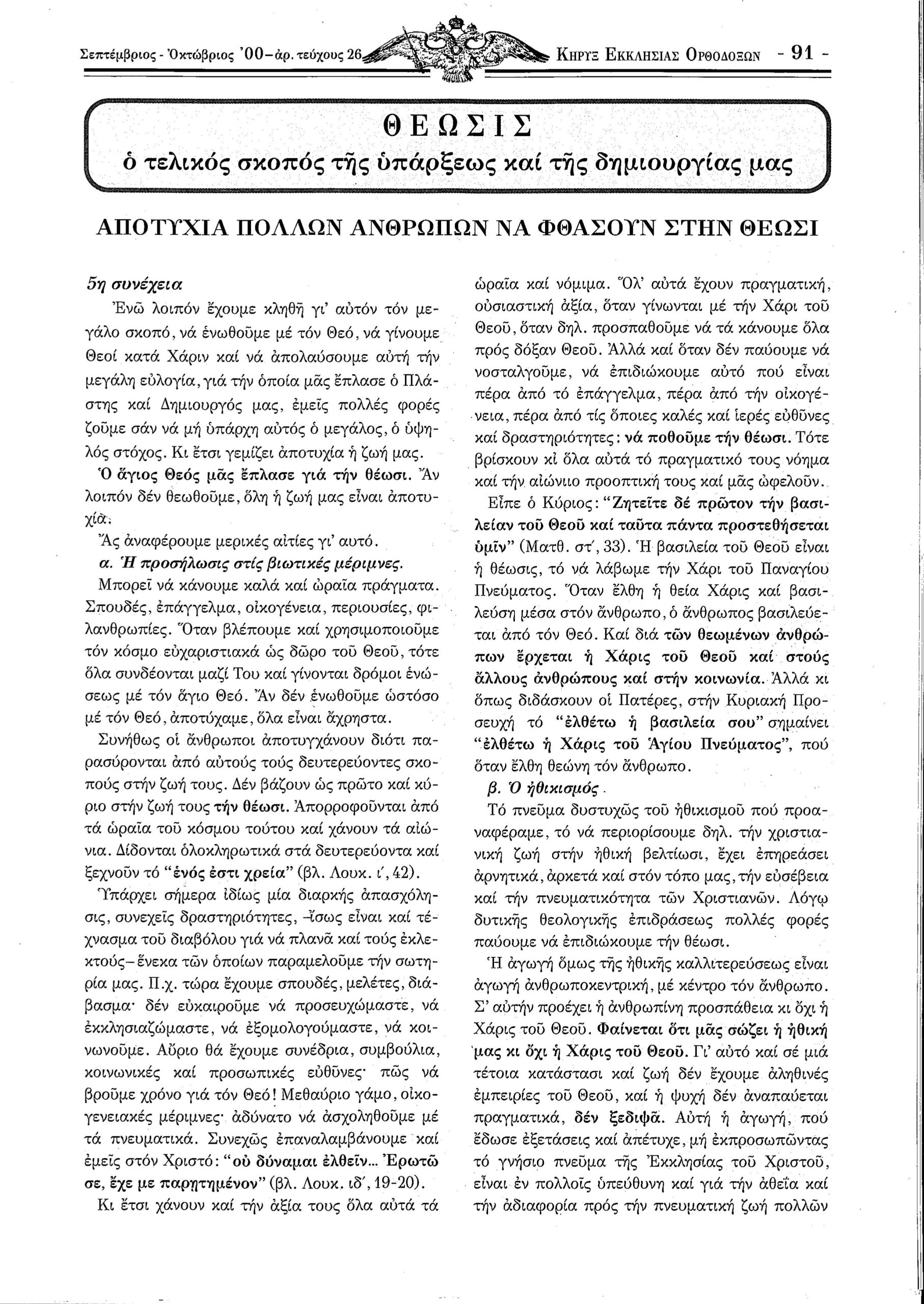 ‒ Θέωσις ὡς ὁ τελικὸς σκοπὸς τῆς ὑπάρξεως καὶ τῆς δημιουργίας μας (5η συνέχεια)