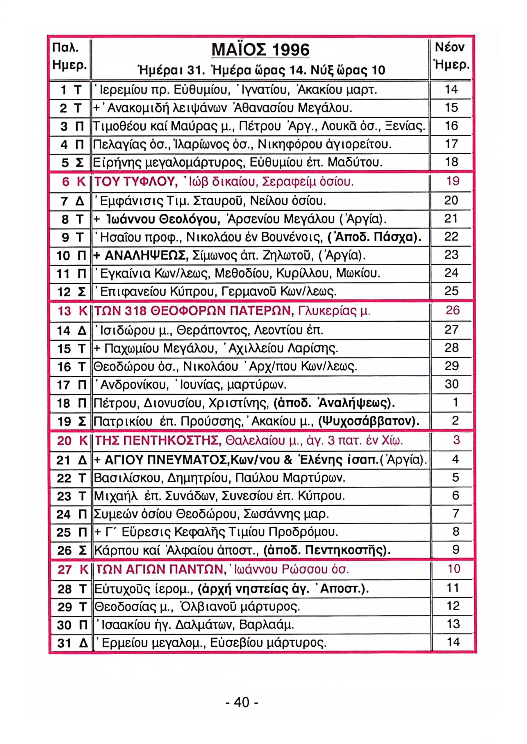 ΗΜΕΡΟΛΟΓΙΑ ΤΟΙΧΟΥ
