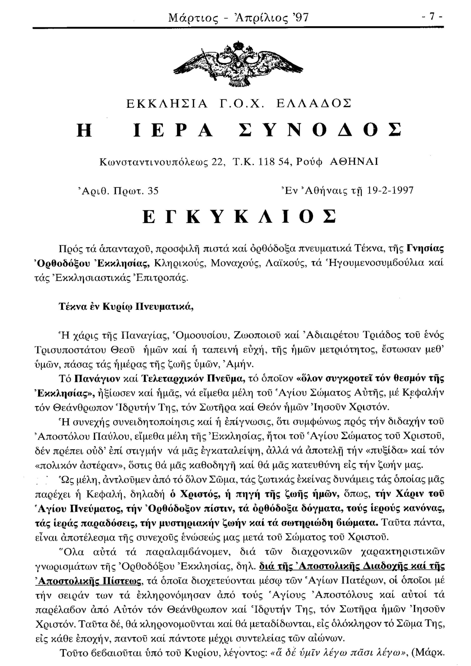 Ποιμ. Εγκύκλιος Α.Π. 2660/26/02/1993